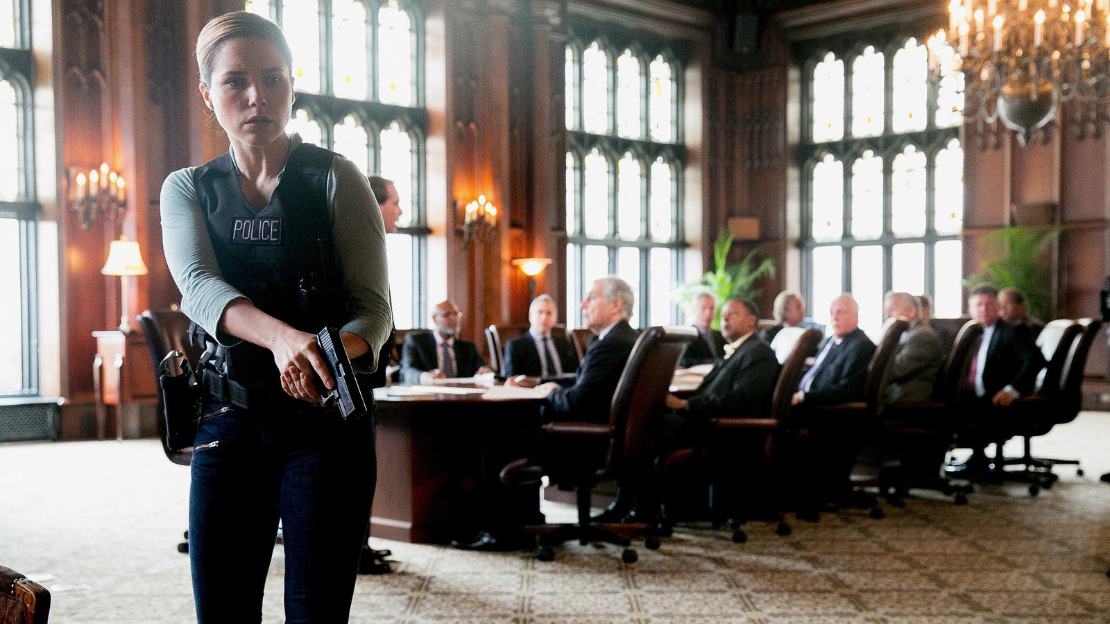 Mittel und WegeEin Mann droht, die Geschäftsleitung zu ermorden: Sophia Bush als Erin Lindsay (vorne)Bild: © SRF/2014 Universal Television LLC.