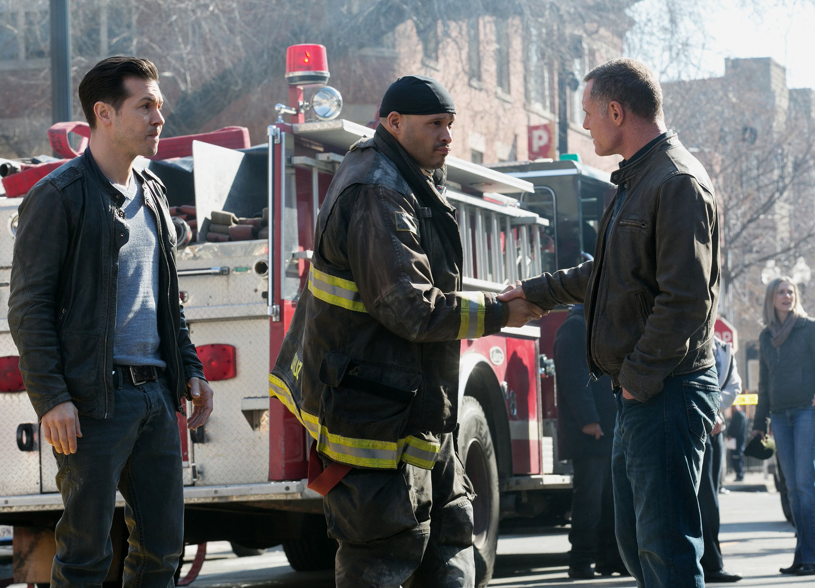 FeuerpauseJay Halstead (Jesse Lee Soffer), Eddie Brackton (Rolando Boyce) und Eric Wilson (Dre Marquis)Bild: © NBC / Matt Dinerstein/NBC / Episodic / © 2019 NBCUniversal Media, LLC