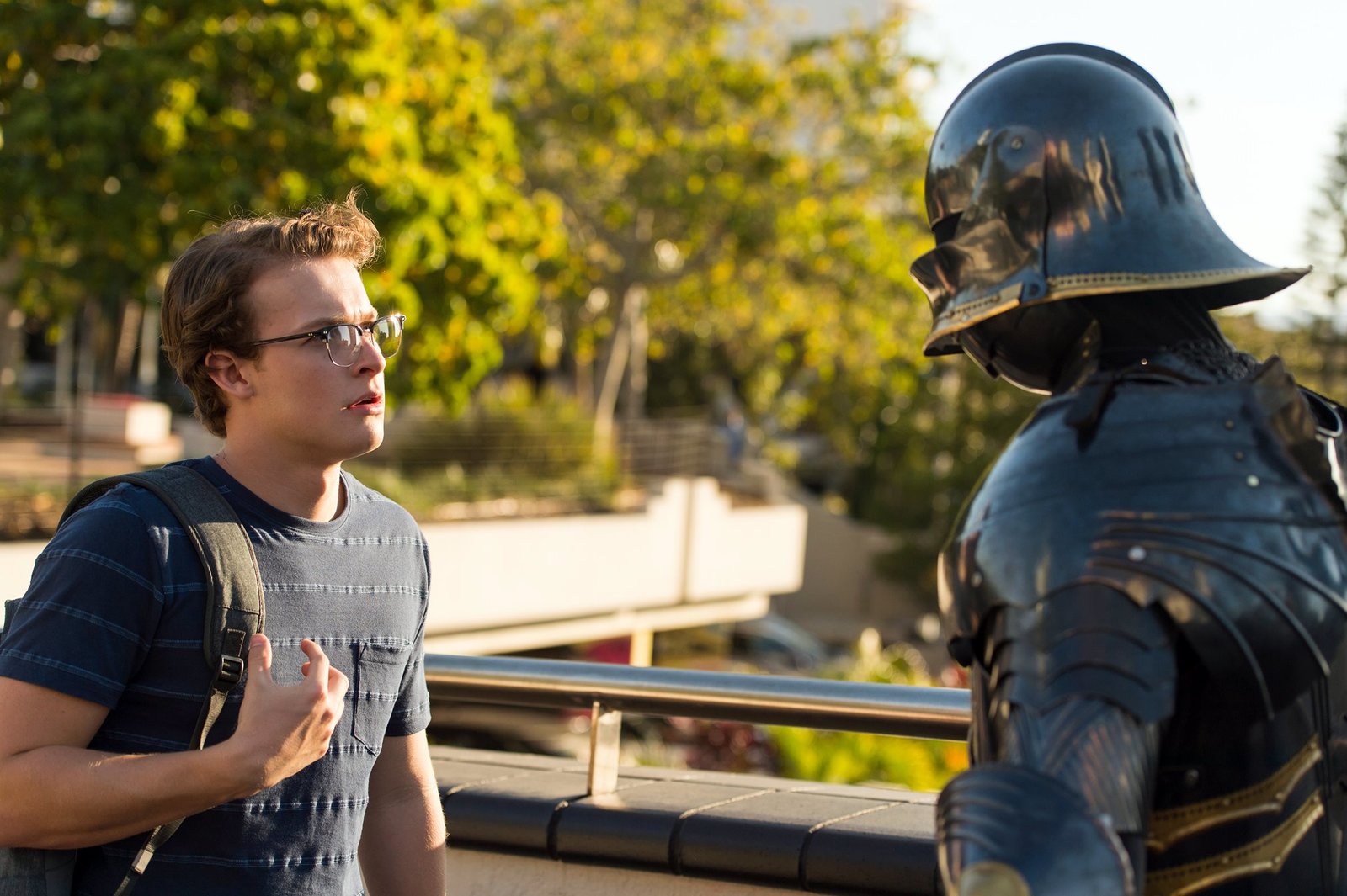 Rüstung auf AbwegenPeter (Jamie Carter l.) trifft in der Stadt auf eine leere Rüstung, die polternd durch die Straßen läuft. Er glaubt nicht, dass dies nur ein Werbegag ist. Für ihn ist hier Magie im Spiel.Bild: © ZDF und (c) 2018 Jonathan M. Shiff Productions Pty.Ltd; Screen Queensland Pty.Ltd.; Screen Australia.