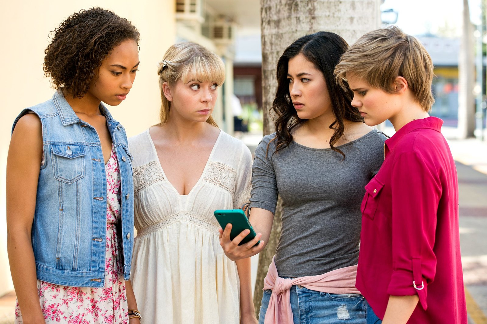 Rüstung auf AbwegenRuksy ( Rainbow Wedell v.l.), Lily (Mia Milnes) , Kyra (Kimie Tsukakoshi) und Imogen (Elizabeth Cullen) versuchen herauszufinden, wo sich die umherziehende Rüstung gerade aufhält, um sie wieder einzufangen.Bild: © ZDF und (c) 2018 Jonathan M. Shiff Productions Pty.Ltd; Screen Queensland Pty.Ltd.; Screen Australia.
