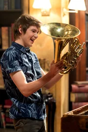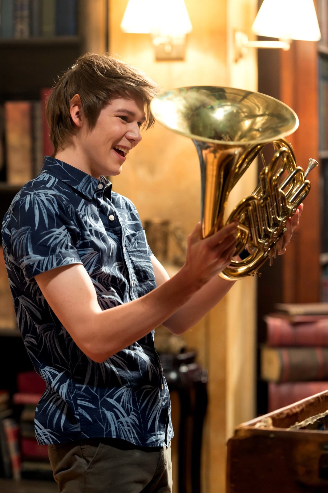 Die ganze Welt ist eine BühneDarra (Julian Cullen) hat ein magisches Horn in der Bibliothek gefunden. Dieses wird später bei der Suche nach dem verschwundenen Postboten noch gute Dienste leisten.ÂBild: © ZDF/Jonathan M. Shiff Productions/Screen Queensland