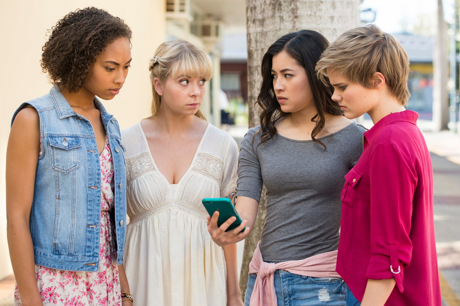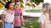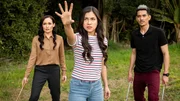 Magie liegt in der LuftLily (Mia Milnes links) möchte nicht, dass Kyra (Kimie Tsukakoshi rechts) Peter (Jamie Carter Mitte) von der unsichtbaren magischen Welt erzählt.Bild: © ZDF/Jonathan M. Shiff Productions/Screen Queensland