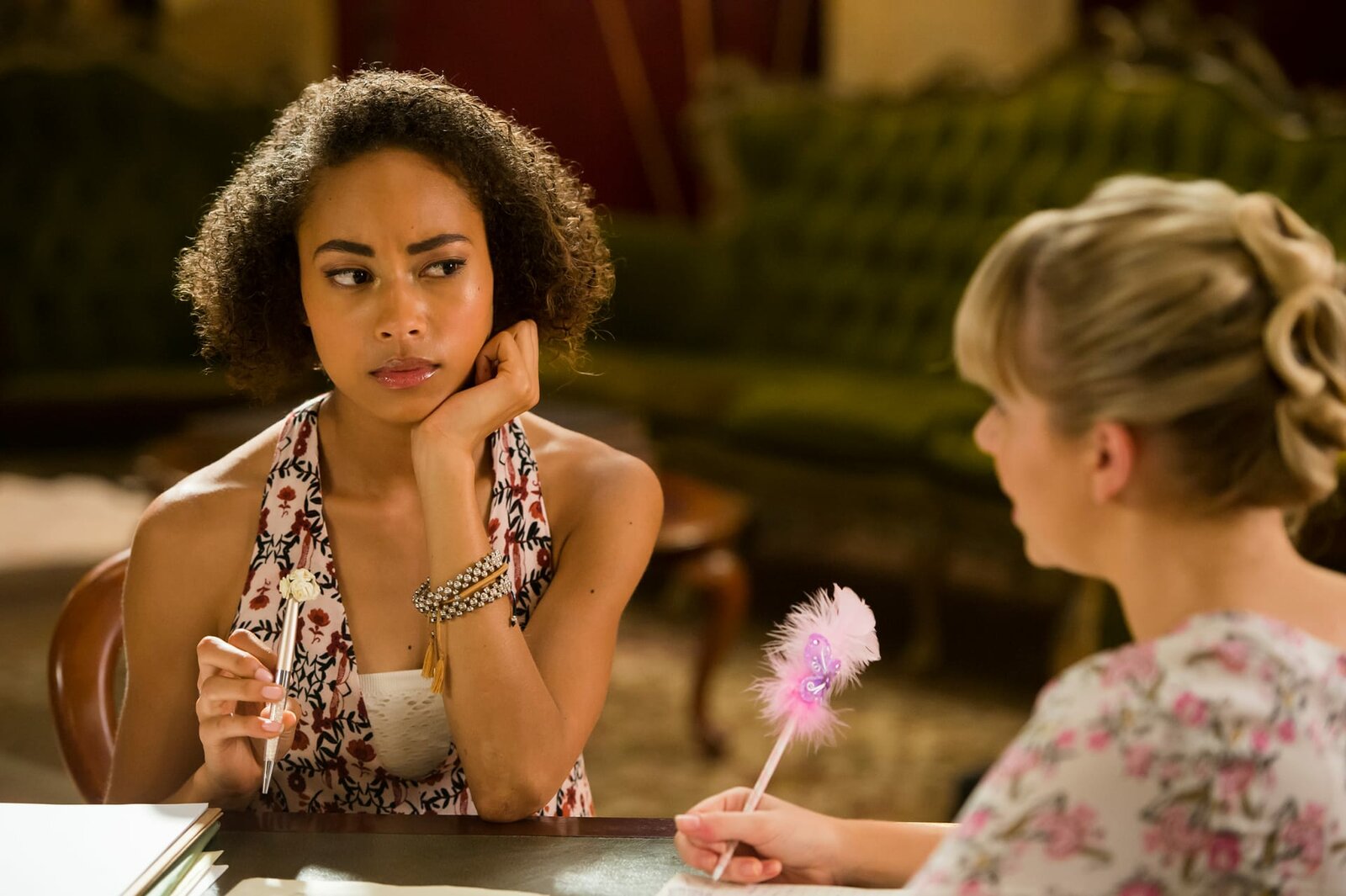 Zeit des AbschiedsRuksy (Rainbow Wedell, l.) und Lily (Mia Milnes, r.) sitzen in der Bibliothek der Magie und beraten, wie sie Kyra helfen können. Das Dezernat für magische Intervention hat beschlossen Kyra die magischen Kräfte zu entziehen. Dann wäre sie wieder ein ganz gewöhnlicher Mensch.Bild: © ZDF/Jonathan M. Shiff Productions/Screen Queensland