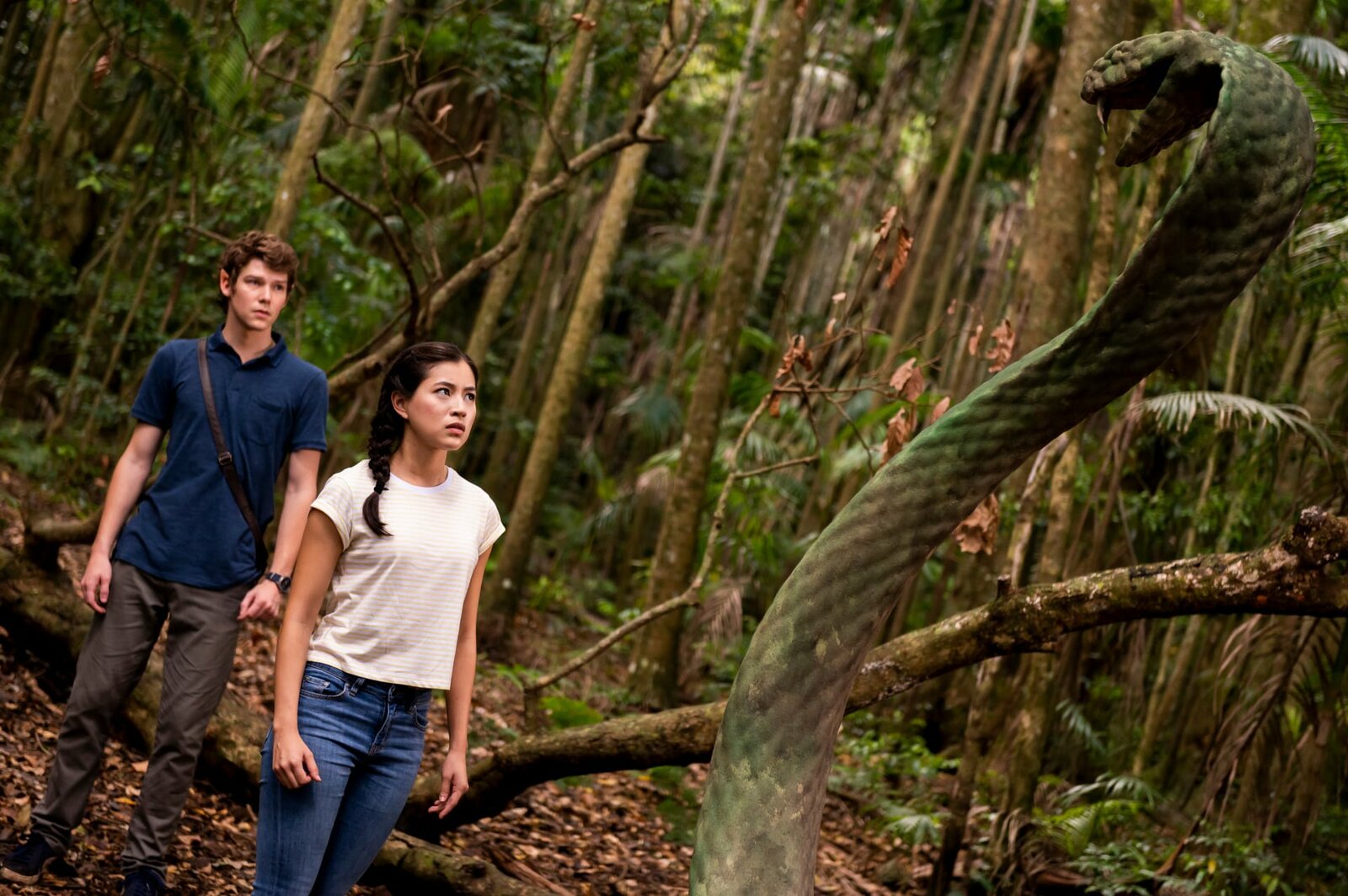 Der zweite SchlüsselDarra (Julian Cullen, l.) und Kyra (Kimie Tsukakoshi, r.) haben im Dschungel eine Kobrastatue entdeckt, die sich ihnen bedrohlich entgegen stellt. Es scheint, als wolle sie ihre Suche nach dem zweiten Schlüssel zum "Tempel des purpurnen Lotus" verhindern.Bild: © ZDF und ©2020 Jonathan M. Shiff Productions