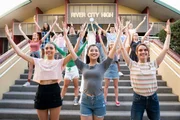 Unfreiwillig berühmtBens Video hat die ganze Schule in River City verzaubert. Alle Schüler können nicht anders, als Loblieder auf Ben zu singen und dabei zu tanzen. Auch Tayla (Miah Madden, l.), Kyra (Kimie Tsukakoshi, M.) und Mathilda (Arnijka Larcombe-Weate, r.). Bald ist die gesamte Stadt im "Ben-Fieber".Bild: © ZDF und ©2020 Jonathan M. Shiff Productions