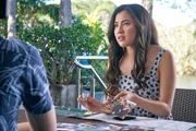 Der KunstraubKyra (Kimie Tsukakoshi, M.) und Imogen (Elizabeth Cullen, r.) haben ein Gemälde aus dem alten Lagerhaus in Bangkok ins Gangway-Café geholt. Sie vermuten, dass in dem Bild der dritte Schlüssel zum "Tempel des purpurnen Lotus" versteckt ist. Tayla (Miah Madden, l.) will Kyra und Imogen helfen, den Schlüssel zu finden.Bild: © ZDF und (c) 2020 Jonathan M. Shiff Productions