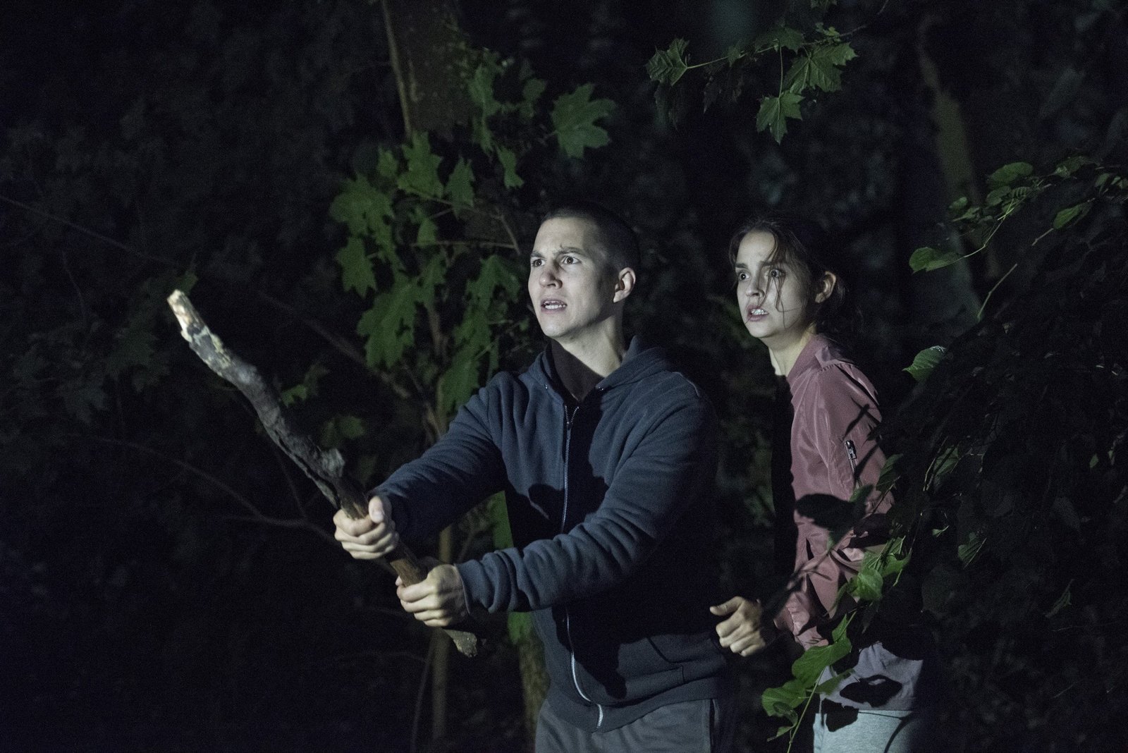 LoslassenEin fremder Mann schleicht sich im Garten der Clubmitglieder. Leo (Tim Oliver Schultz) und Emma (Luise Befort) wollen ihn zur Rede stellen.Bild: © TV NOW / Martin Rottenkolb