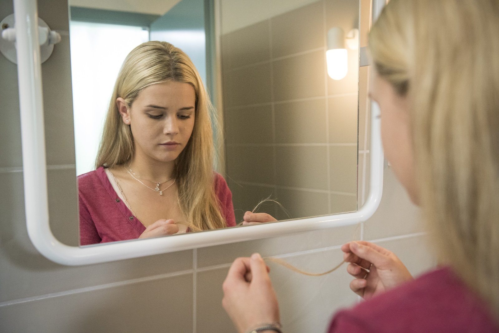 FreiheitKim (Nele Schepe) verliert bereits die ersten Haare.Bild: © VOX / Martin Rottenkolber