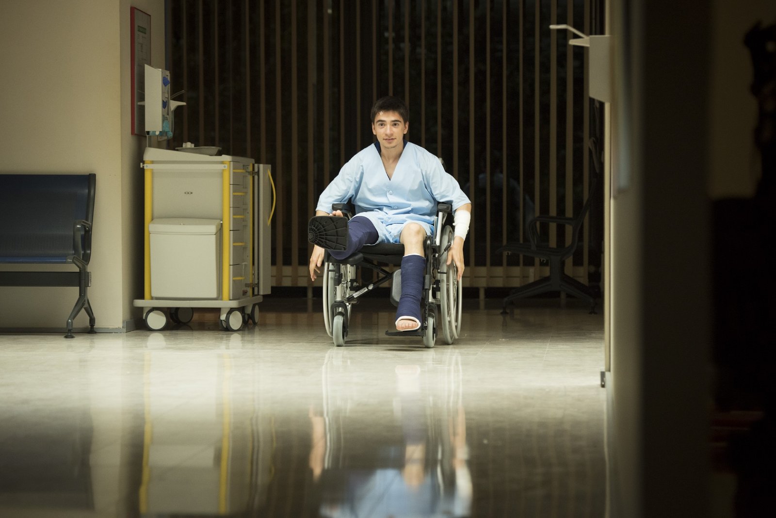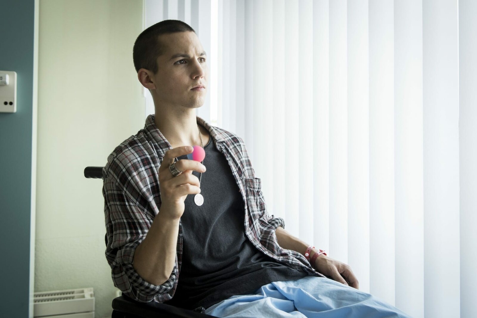 Der ClubLeo (Tim Oliver Schultz) findet seine TC-Ergebnisse unter dem Rollstuhl und ist am Boden zerstört.Bild: © RTL Passion / Martin Rotte
