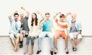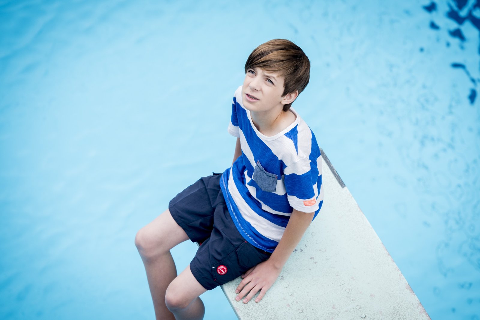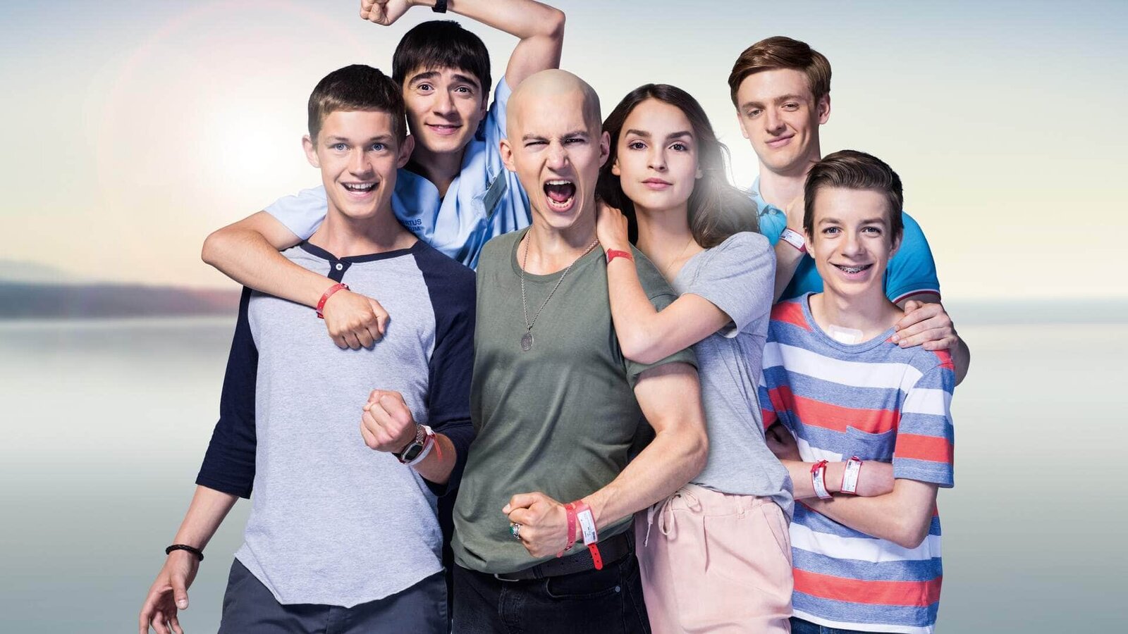 Das Schwimmbad"Club der roten Bänder" mit (v.l.) Anton 'Toni' (Ivo Kortlang, Leo (Tim Oliver Schultz), Emma (Luise Befort), Alex (Timur Bartels), Hugo (Nick Julius Schuck) und Jonas (Damian Hardung).Bild: © MG RTL D / Guido Lange