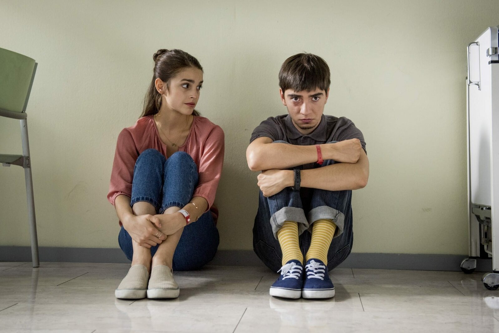 Der ClubV.l.: Leo Roland (Tim Oliver Schultz) und Emma Wolfshagen (Luise Befort) warten am Bett von Jonas Till Neumann (Damian Hardung), der gerade operiert worden ist.Bild: © MG RTL D / Martin Rottenko