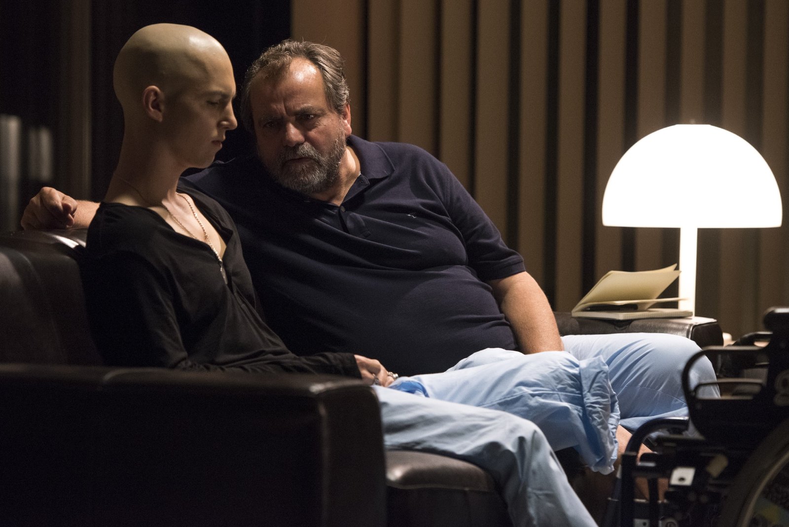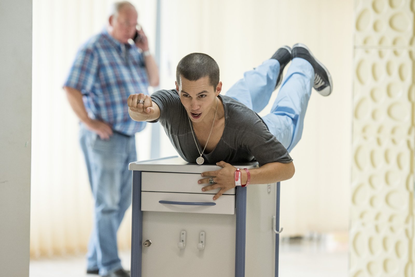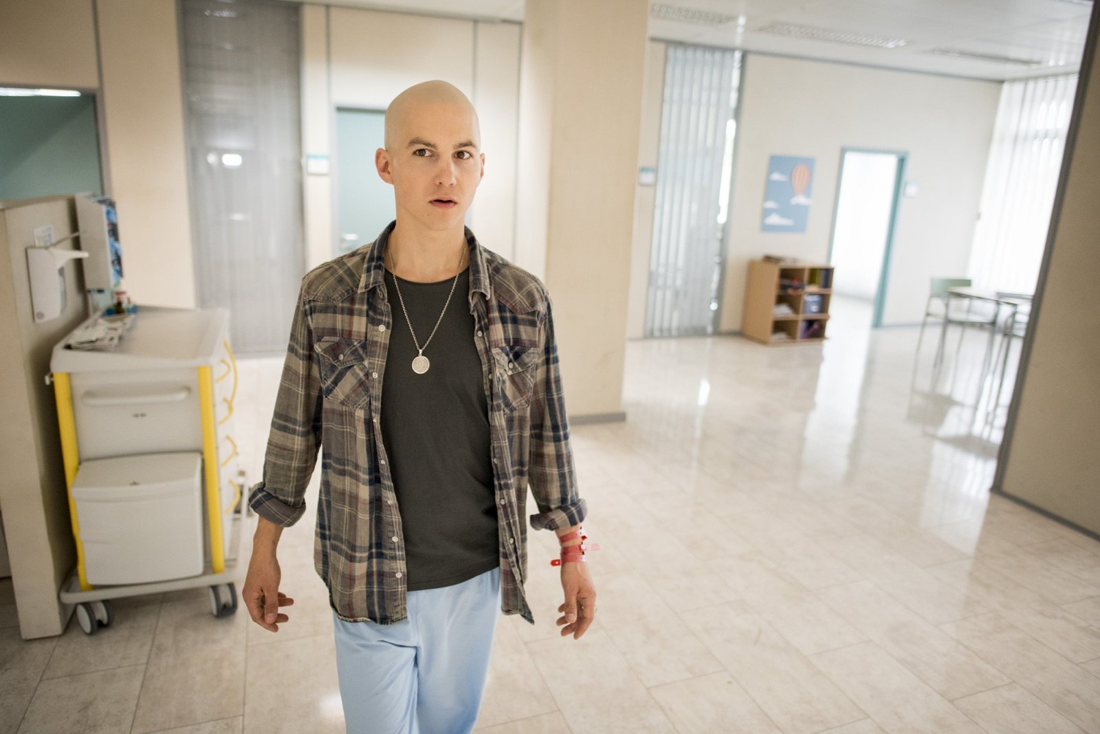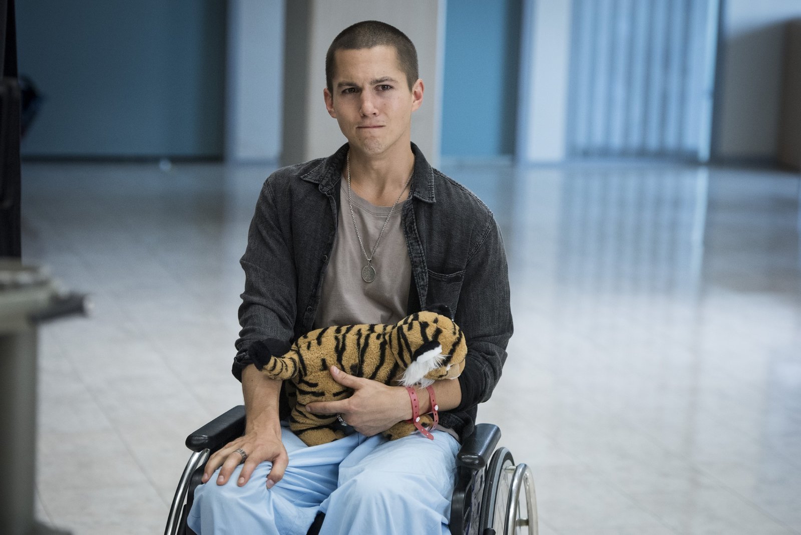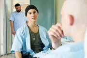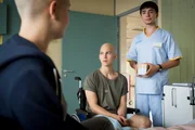 Das SchwimmbadJonas Till Neumann (Damian Hardung) will ein letztes Mal seine Beine spüren, bevor er operiert und ein Bein amputiert wird. Pfleger Dietz (Sahin Eryilmaz) und Mutter Anne Neumann (Alexandra Schalaudek) gewähren ihm den letzten Wunsch.Bild: © RTL Passion / Martin Rotte