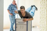 BefreiungLeos Vater Peter (Jürgen Hartmann, l.) ist überrascht, als Leo (Tim Oliver Schultz) unerwartet bei ihm in der Kneipe auftauchtBild: © TV NOW / Martin Rottenkol