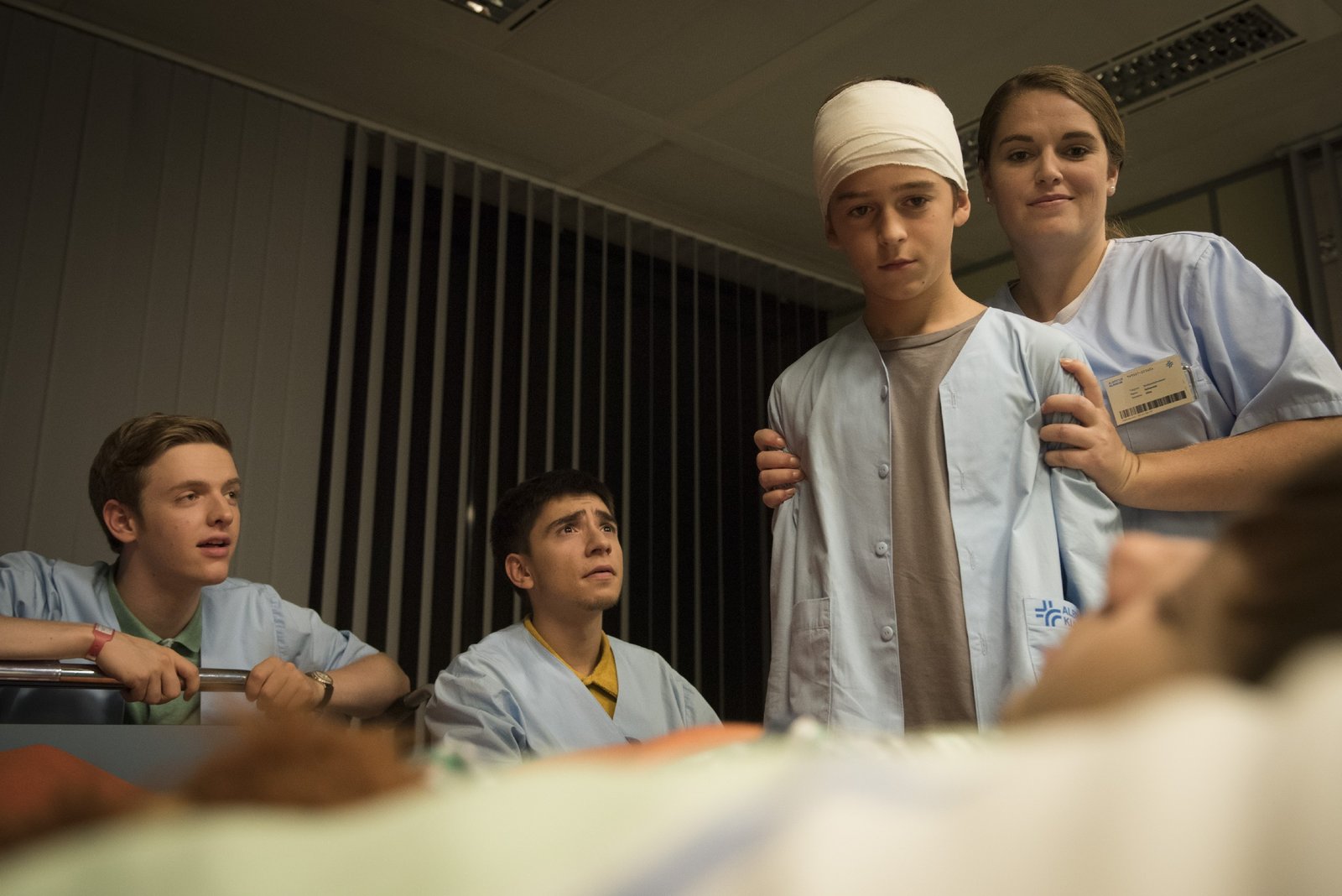 Der ClubV.l.: Leo Roland (Tim Oliver Schultz) und Emma Wolfshagen (Luise Befort) warten am Bett von Jonas Till Neumann (Damian Hardung), der gerade operiert worden ist.Bild: © RTL Passion / Martin Rotte