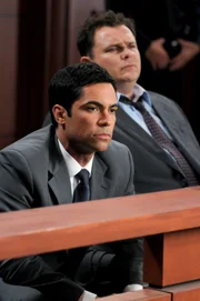 Die ÜberfahrtDet. Scott Valens (Danny Pino, l.) und Det. Nick Vera (Jeremy Ratchford, r.) verfolgen die Aussage von Det. Lilly Rush, die als Zeugin vor Gericht aussagt.Bild: © Warner Bros. Television Lizenzbild frei