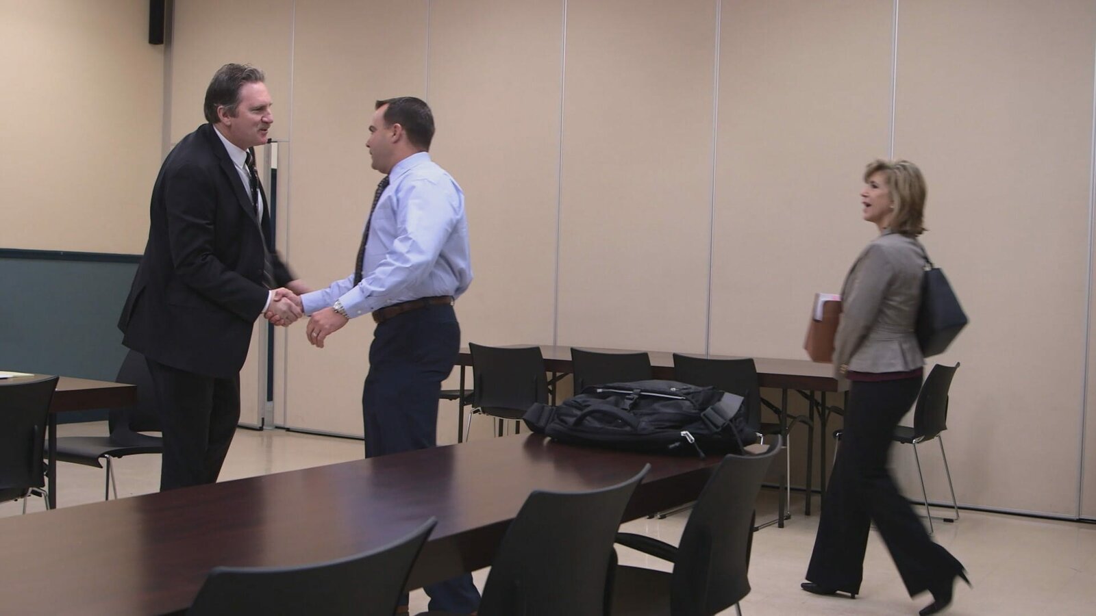 Streit ums ErbeKelly Siegler hört dem Ermittler zu, der einen Verdächtigen im Fall Glenn Pennie befragt.Bild: © MG RTL D