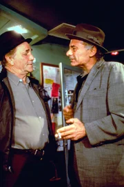 Zwei Leichen und Columbo in der LederjackeColumbo (Peter Falk, l.); Mo Weinberg (Burt Young, r.)Bild: © 1992 Universal City Studios, Inc.
