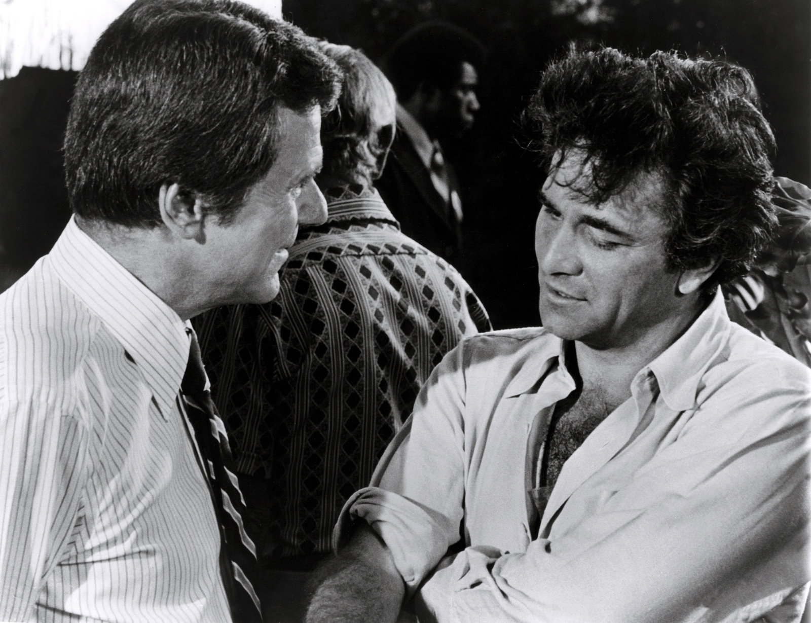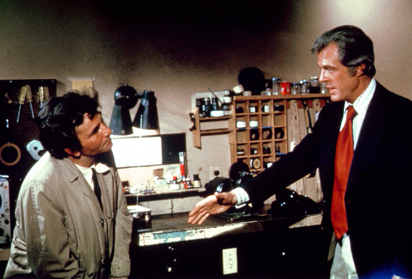 Etude in Schwarz"Columbo - Etüde in Schwarz", Die Geliebte des gefeierten Dirigenten Alex Benedict wird für dessen ehrgeizige Pläne zum Problem. Sie fordert von ihm, dass er sich scheiden lässt. Ohne die finanzielle Unterstützung seiner Schwiegermutter könnte Alex` Orchester nicht bestehen. Alex tötet sie und täuscht einen Selbstmord vor. Ein kleiner Fehler erregt Columbos Misstrauen.Im Bild (v.li.): Peter Falk (Insp. Columbo), John Cassavetes (Alex Benedict).Bild: © ORF2