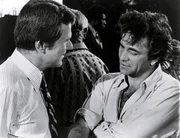 Stirb für mich"Columbo - Stirb für mich", Mitten in der `heißen` Wahlkampfphase des Senatskandidaten Nelson Hayward lässt dessen Manager Harry Stone in der Presse verlautbaren, dass die Mafia Hayward ermorden will. Das sorgt für Schlagzeilen. Nelson will seine Bekanntheit weiter steigern. Kaltblütig ermordet er Harry Stone und tarnt die Tat als Anschlag auf sich selbst.Im Bild (v.li.): Jackie Cooper (Nelson Hayward), Peter Falk (Insp. Columbo).Bild: © ORF2