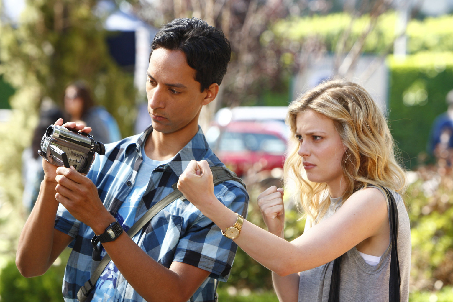 Moderne SpionageAnnie (Alison Bire, r.) und Abed (Danny Pudi, l.) haben eine wichtige Mission - sie jagen einen Paitnball-Spieler, der im Untergrund agiert ...Bild: © ProSieben Fun