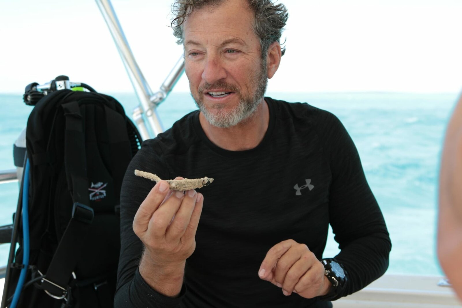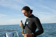 Der zweite AnlaufMike Perna holding a piece of historic wreckage after diving into the ocean.Bild: © Discovery Channel / Discovery Communications
