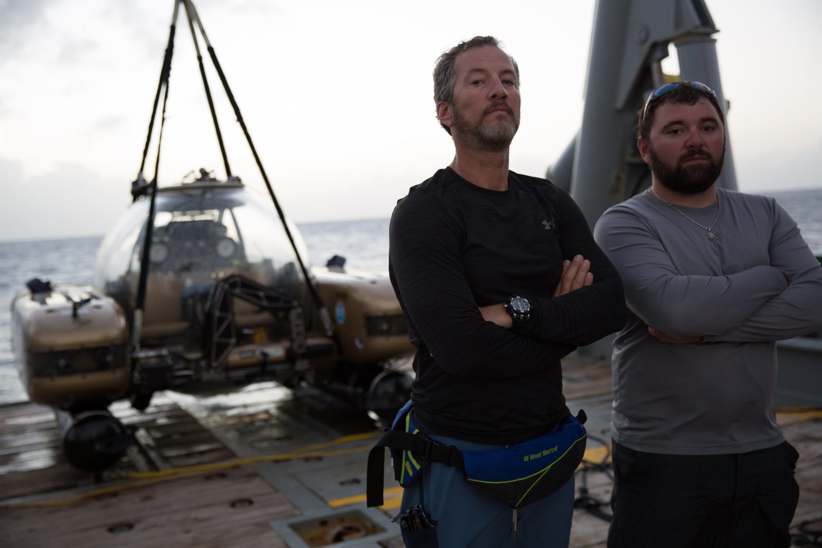 Stürmische TageL-R: Eric Schmitt and Darrell Miklos in posing in front of submarine.Bild: © Discovery Channel / Discovery Communications