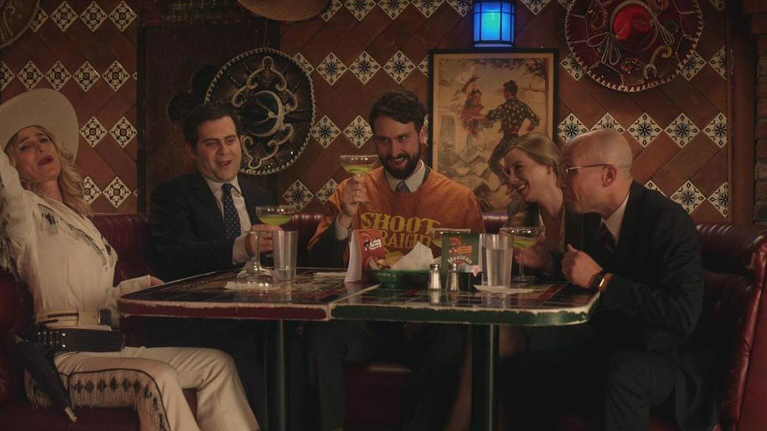 Die KostenabrechnungL-R: Mrs. Cowboy (Kyra Sedgwick), Jake (Jake Weisman), Matt (Matt Ingebretson), Kate (Anne Dudek), John (Adam Lustick)Bild: © Comedy Central