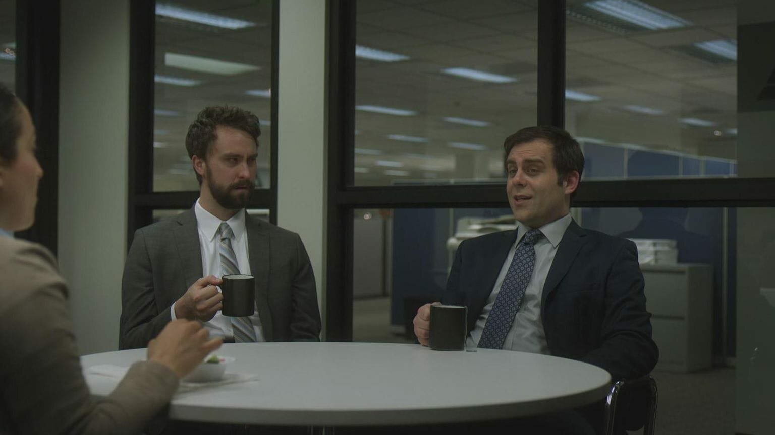 PowerPoint des TodesL-R: Grace (Aparna Nancherla), John (Adam Lustick), Kate (Anne Dudek), Matt (Matt Ingebretson), Jake (Jake Weisman), Christian DeVille (Lance Reddick).Bild: © Comedy Central