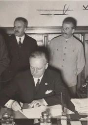 Höllenfahrt - April bis August 19391939: Joachim von Ribbentrop bei Vertrags-Unterzeichnung in Moskau.Bild: © ZDF und © SPIEGEL TV.
