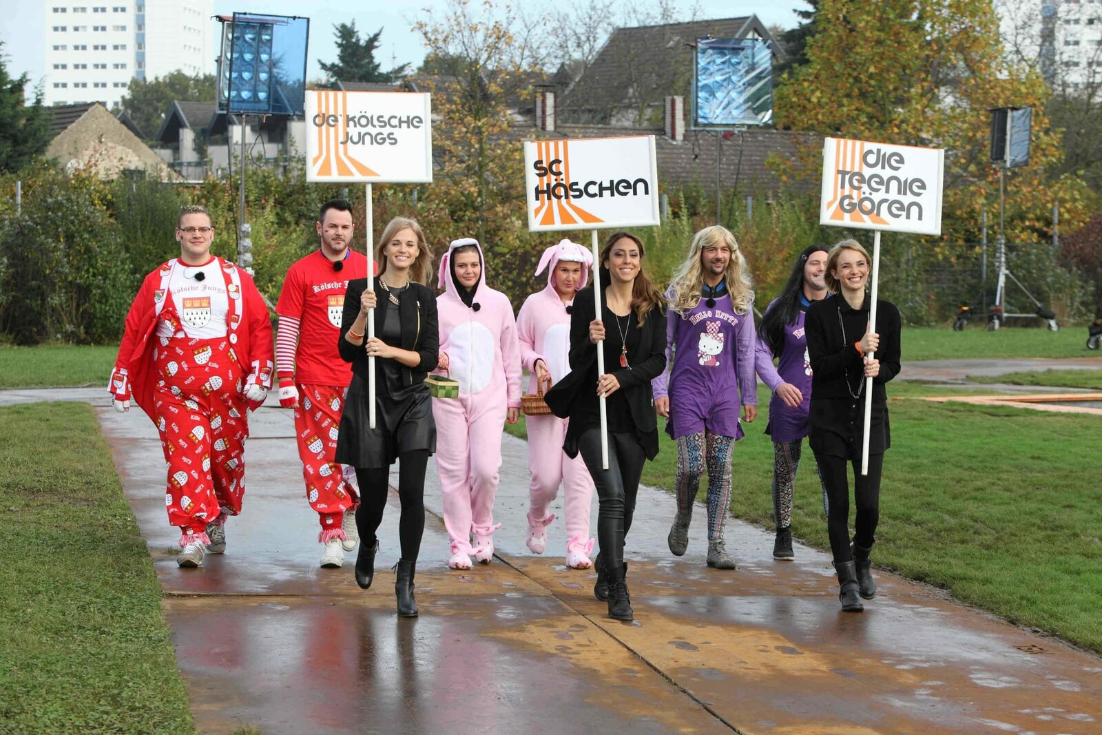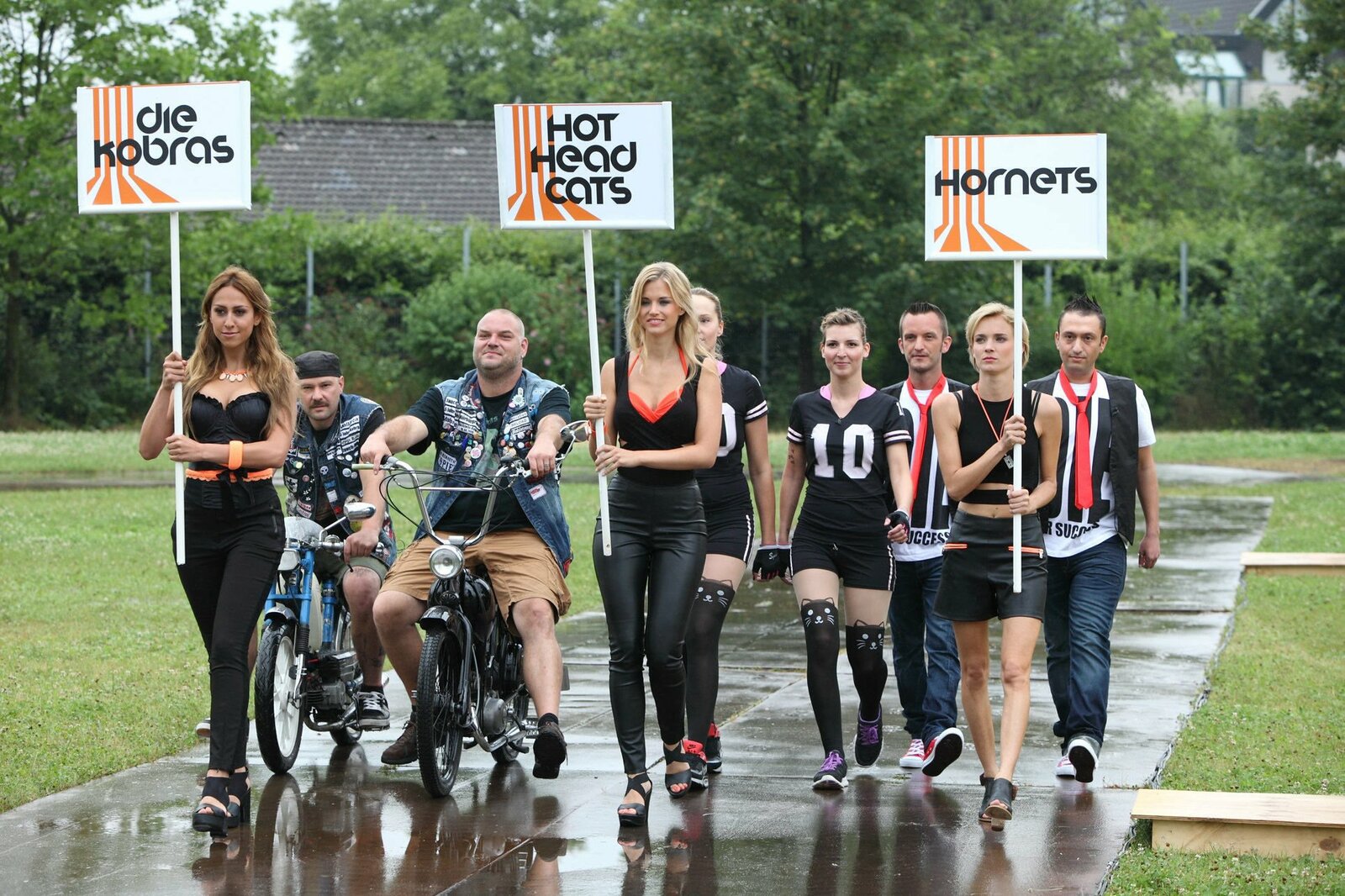 Folge 3Ambitionierte Kerle, wagemutige Frauen, crashreiche Actionspiele: In der Physical-Game-Show "Crash Games - jeder Sturz zählt!" stellen sich drei Duos in selbst entworfenen Kampf-Outfits fünf kniffligen Hindernissen: (v.l.n.r.) Patrick & Mirko "De Kölsche Jungs", Miriam Rickli, Nina & Sabrina "SC Häschen", Melissa Khalaj, Sebastian & Stefan "Die Teenie Gören" und Annie Hoffmann ...Bild: © ProSieben / Frank Hempel Eigenproduktionsbild frei