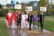 Crash Games - jeder Sturz zähltAmbitionierte Kerle, wagemutige Frauen, crashreiche Actionspiele: In der Physical-Game-Show "Crash Games - jeder Sturz zählt!" stellen sich drei Duos in selbst entworfenen Kampf-Outfits fünf kniffligen Hindernissen: (v.l.n.r.) Sabrina und Nina aus dem Team "SC Häschen" ...Bild: © ProSieben / Frank Hempel Eigenproduktionsbild frei