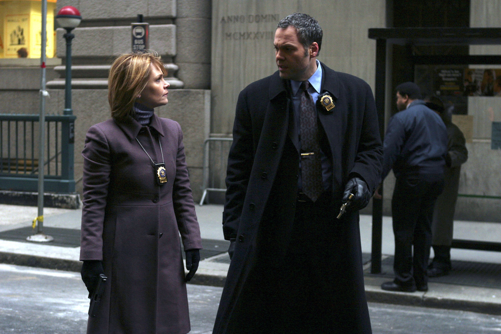 Amok-- "Family Values" Episode 8015 -- Pictured:(l-r) Eric Bogosian as Captain Danny Ross, Vincent D'Onofrio as Detective Robert Goren -- USA Network Photo: Will HartBild: © Universal TV