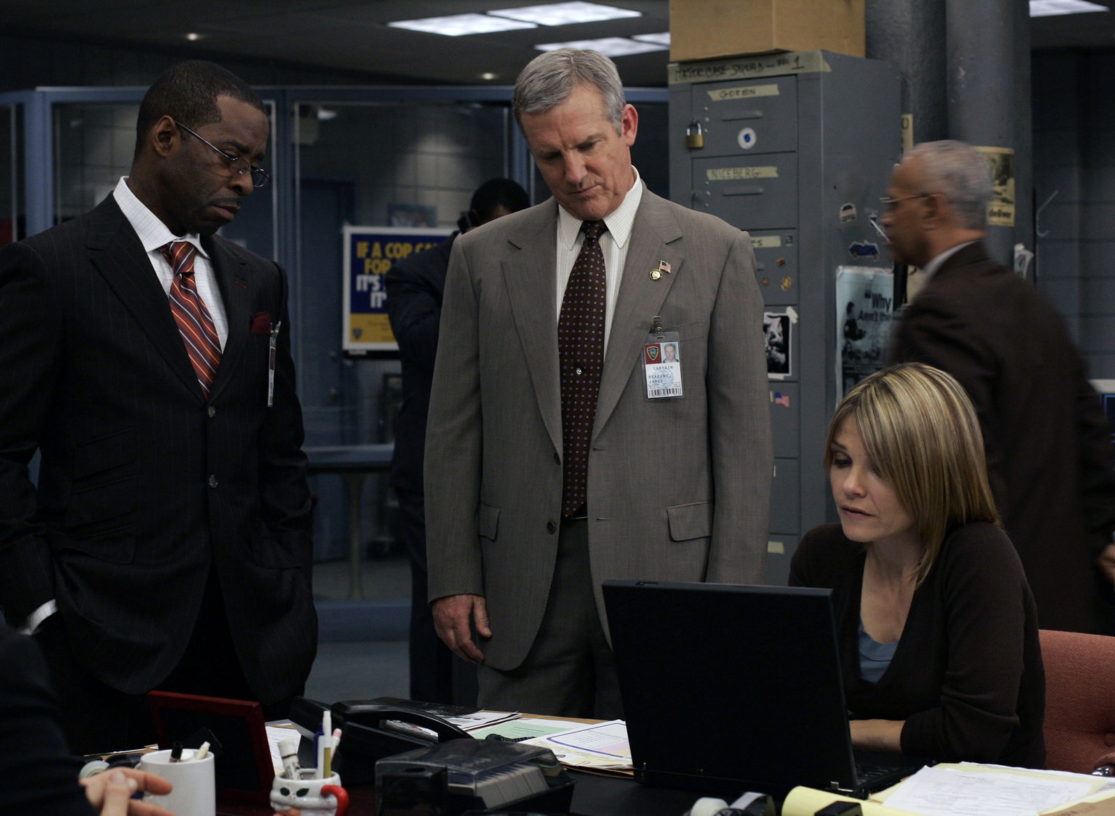Im Sumpf des Verbrechens - Teil 2LAW & ORDER -- NBC Series -- "In The Wee Small Hours" Parts I and II -- Pictured: (l-r) Chris Noth Detective Mike Logan -- NBC Photo: Will Hart FOR EDITORIAL USE ONLY -- DO NOT SELL/ARCHIVE October 7, 2005 Episodes: 05006 & 05007 Law & Order: Criminal Intent "In The Wee Small Hours" Episode Director: Jean De Segonzac Scene 85 (Int) DA's Office large conference room Vincent D'Onofrio (Goran) Kathryn Erbe (Eames) Chris Noth (Logan) Annabellsa Sciorra (Barex) Countney B. Vance (Carver) photo credit: Will Hart / NBC UniversalBild: © Universal TV