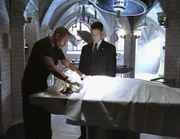 Im Augenblick des TodesAlles deutet auf ein Gewaltverbrechen hin: Dr. Sheldon Hawkes (Hill Harper, l.) zeigt Detective Mac Taylor (Gary Sinise) die Würgemale am Hals der Toten.Bild: © RTL Crime