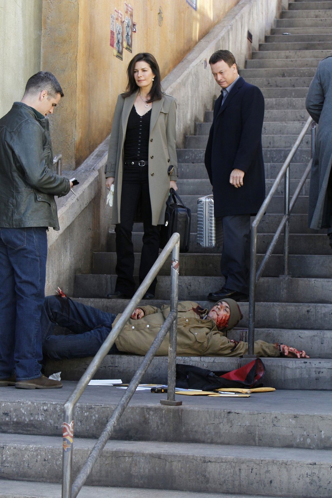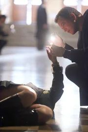 Unter GeiernEin erfolgreicher Unternehmer wird tot aufgefunden. Das Ermittler-Duo Stella Bonasera (Melina Kanakaredes) und Don Flack (Eddie Cahill) nimmt jeden Winkel des Hauses in Augenschein. Die Leiche des Unternehmers John Pollock wird in dem Dachgarten seines Hauses entdeckt. Zunächst gerät Pollocks attraktive junge Frau Flora, die aus Venezuela stammt, in Verdacht. Die Vermutung liegt nahe, dass sie ihren Ehemann nur aus finanziellen Gründen geheiratet und nun aus Habgier umgebracht hat. Allerdings hat Flora ein scheinbar hieb- und stichfestes Alibi: Sie war zur Tatzeit in einer anderen Stadt. Zudem ergibt die Obduktion der Leiche, dass Pollock an Magengeschwüren litt. Der Unternehmer starb an inneren Blutungen, die durch einen schweren Fausthieb in den Magen herbeigeführt wurden. Seine Frau hätte die Kraft für diesen harten Schlag wohl nur schwerlich aufbringen können. Die Ermittlungen konzentrieren sich darum auf andere Personen aus Pollocks Umfeld. Zum einen scheint Dr. Catherine Rydell,Bild: © Byline: Unter Geiern,