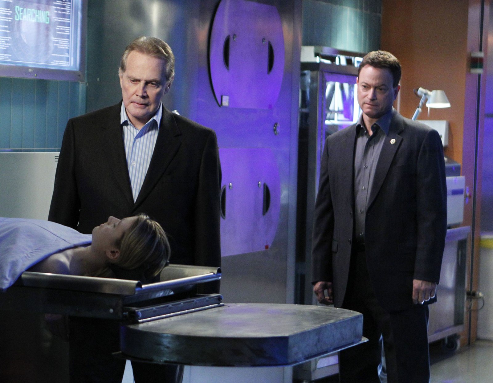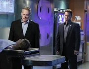 Ruhe sanftDr. Sid Hammerbeck (Robert Joy, l.) geht bei der Obduktion von Selbstmord aus. Die Detectives Stella Bonasera (Melina Kanakaredes) und Mac Taylor (Gary Sinise) glauben jedoch nicht daran, da sie das Opfer seit Jahren kannten.Bild: © MG RTL D / CBS