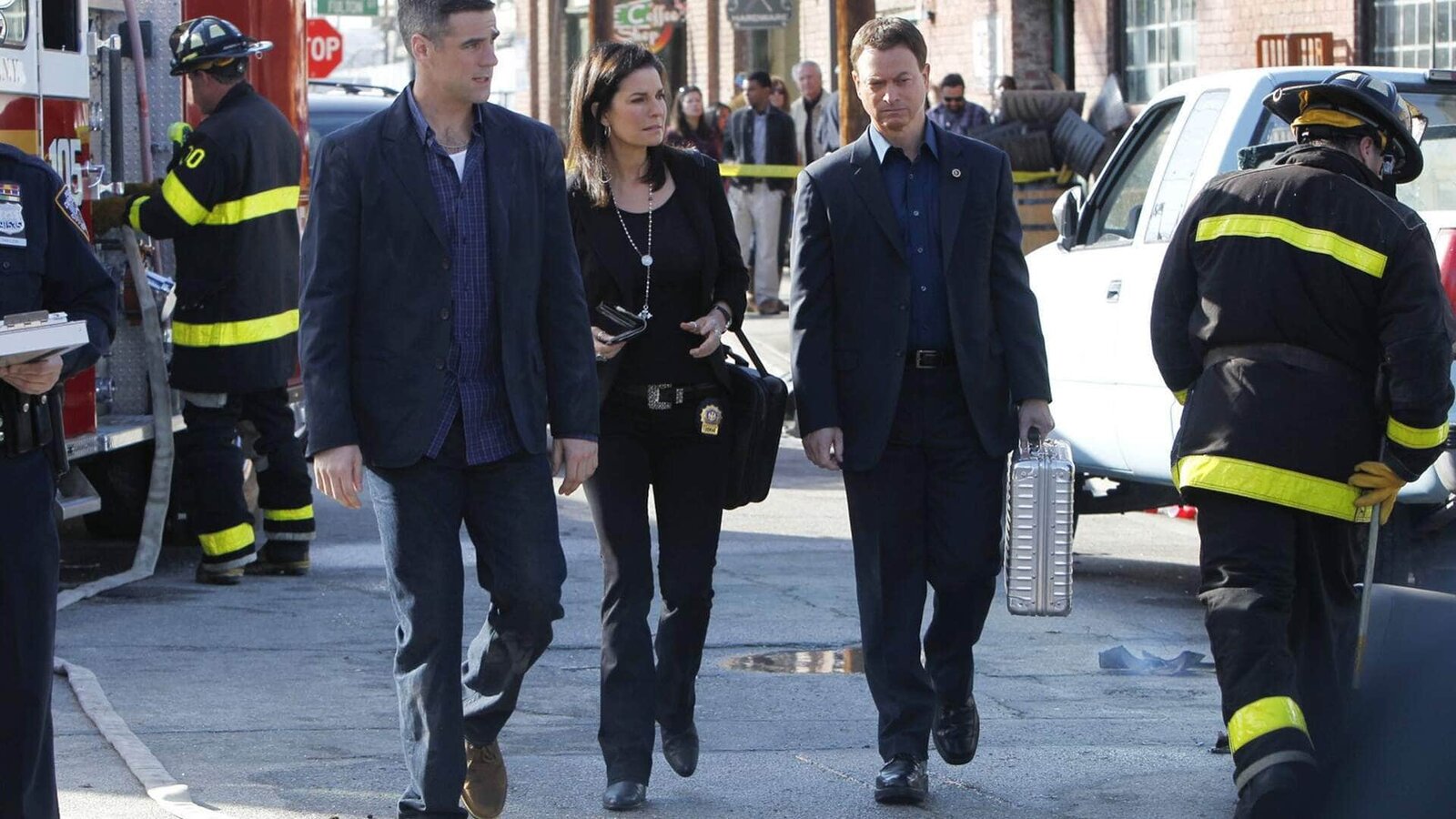 Irisches BlutNach dem Mord an einem Familienvater und dem Anschlag auf den Lieferwagen eines Zigarettenhändlers hat die Elitetruppe des CSI alle Hände voll zu tun. Können die Detectives (v.l.) Don Flack (Eddie Cahill), Jo Danville (Sela Ward) und Mac Taylor (Gary Sinise) den schwierigen Fall lösen?Bild: © MG RTL D / CBS Die Verwendung des VOX-Bildmaterials ist nur zur redaktionellen Berichterstattung im Zusammenhang mit der jeweiligen Sendung unter Angabe der Credits/Quellenangabe und Beachtung der unt
