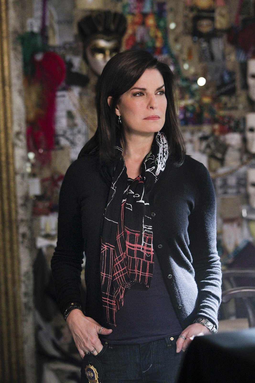 MaskenballDet. Jo Danville (Sela Ward) findet nützliche Hinweise in der Wohnung der Toten: Wie es scheint, hatte die Frau tatsächlich einen Mord beobachtet und war besessen davon den Fall auf eigene Faust zu lösen. Hatte jemand Wind davon bekommen und die einzige Zeugin nun aus dem Weg geräumt?Bild: © RTL Crime