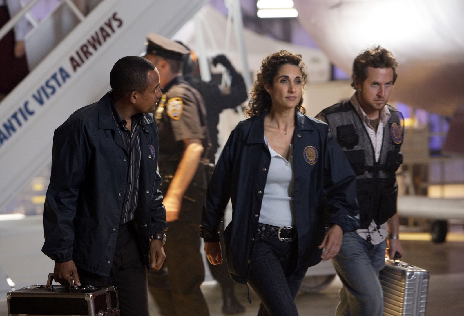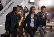 Über den WolkenEin Straftäter und ein Sky Marshal wurden mit derselben Waffe erschossen. Dr. Sheldon Hawkes (Hill Harper, l.), Detective Stella Bonasera (Melina Kanakaredes) und Adam Ross (A. J. Buckley) suchen fieberhaft den Täter.Bild: © VOX / CBS