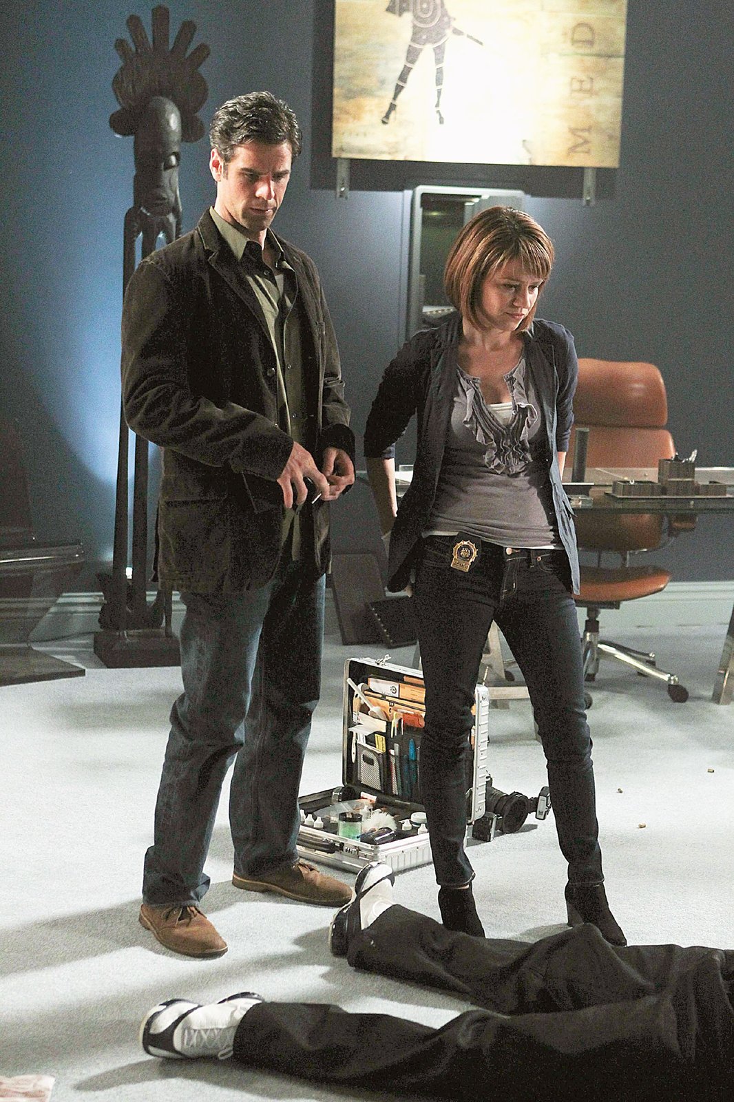 PersonenschadenHat das Aktiengeschçft Börsentycoon Jammer (Rick Pasqualone, unten) das Genick gebrochen? Stella (Melina Kanakaredes) und Don (Eddie Cahill) glauben nicht an einen Selbstmord.Bild: © RTL