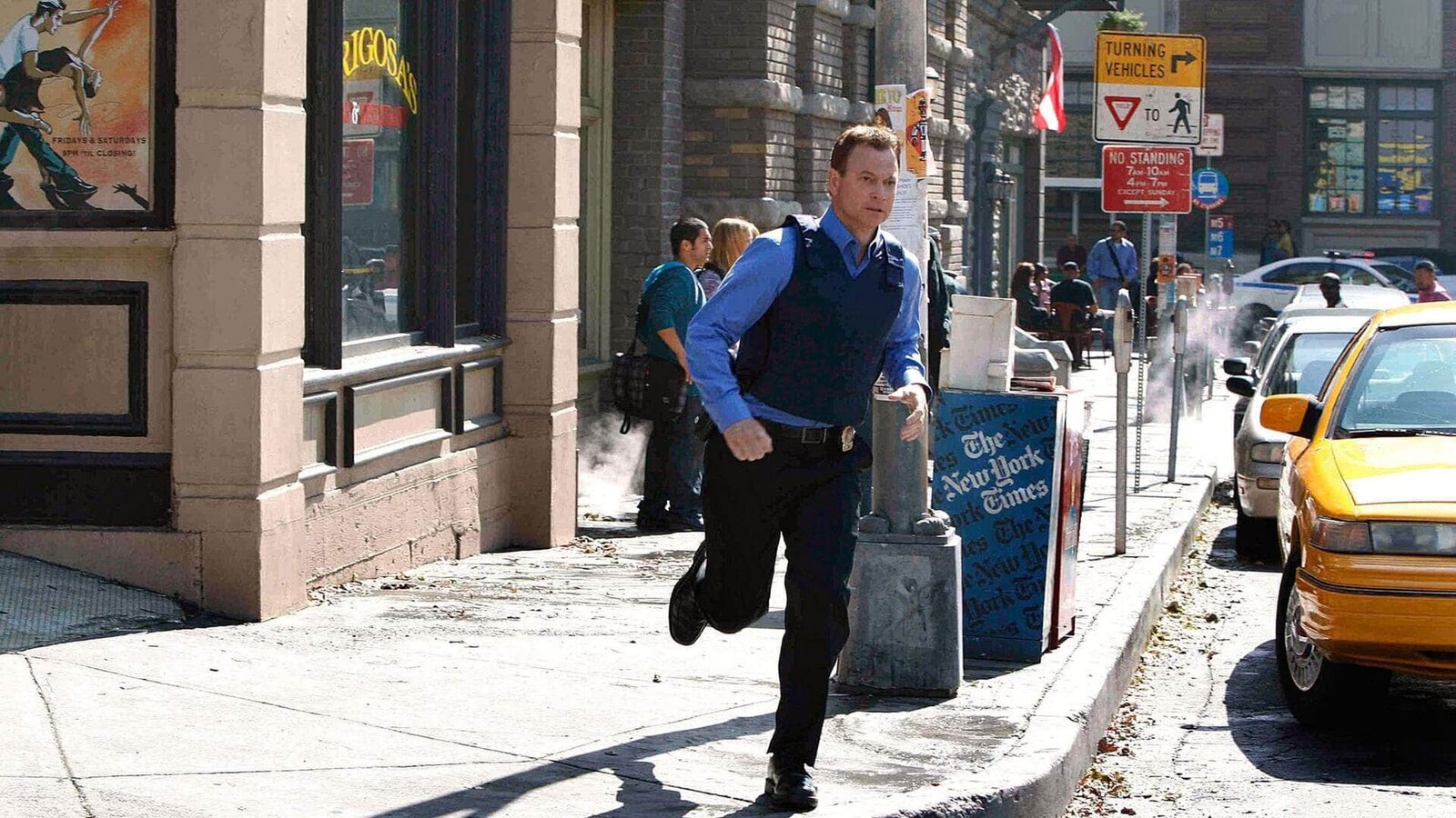 BlutgerichtAuf der anderen Straßenseite wird ein Anführer einer mächtigen Straßengang gesehen. Det. Mac Taylor (Gary Sinise) sprintet los und nimmt sofort die Verfolgung auf.Bild: © MG RTL D / CBS