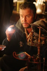 MeisterdetektiveGrissom (William Petersen) und seine Leute müssen den Mord an Sherlock Holmes alias Denny Kingsley aufklären, der tot vorm Kamin in seinem Wohnzimmer gefunden wurde.Bild: © MG RTL D / CBS