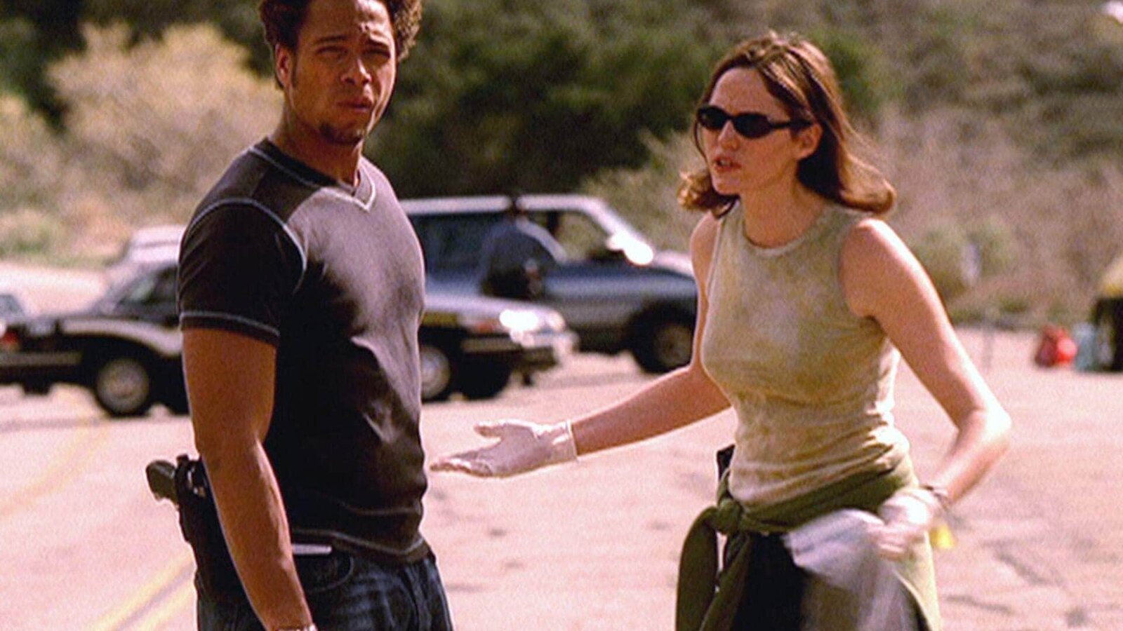Letzte AusfahrtWarrick (Gary Dourdan) und Sara (Jorja Fox) finden Rückstände von Chloroform an den Reifen des Busses. Bedeutet das, dass jemand den Bus absichtlich verunglücken ließ?Bild: © RTL Crime / CBS