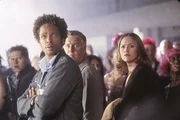 Fauler ZauberEin misslungener Zaubertrick sorgt für einen ungewollten Auftritt des CSI-ler (vorne v.l.) Warrick (Gary Dourdan), Grissom (William Petersen) und Sara (Jorja Fox) auf der Showbühne.Bild: © RTL / CBS