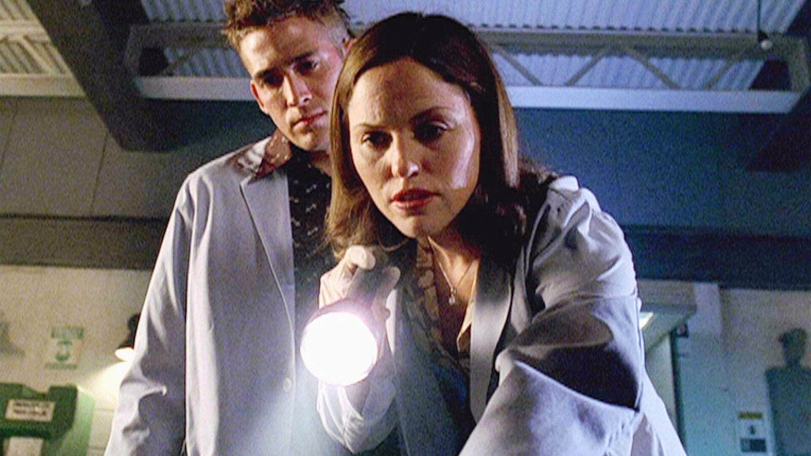 Der Apfel fault nicht weit vom StammCaptain Brass (Paul Guilfoyle) vernimmt Judy Robbins (Wendy Crewson). Dabei drängt sich ihm der Verdacht auf, dass Doc Robbins" Frau ein Verhältnis mit dem Toten hatte...Bild: © MG RTL D