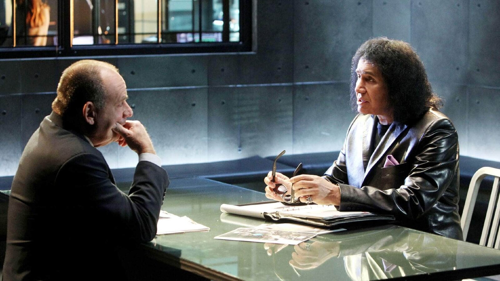 Tangerine träumtCaptain Jim Brass (Paul Guilfoyle, l.) erfährt von Gene Simmons (spielt sich selbst) von einem Unternehmen, das gegen ein gigantisches Honorar Amateure in den Rock'n Roll-Himmel hebt.Bild: © MG RTL D