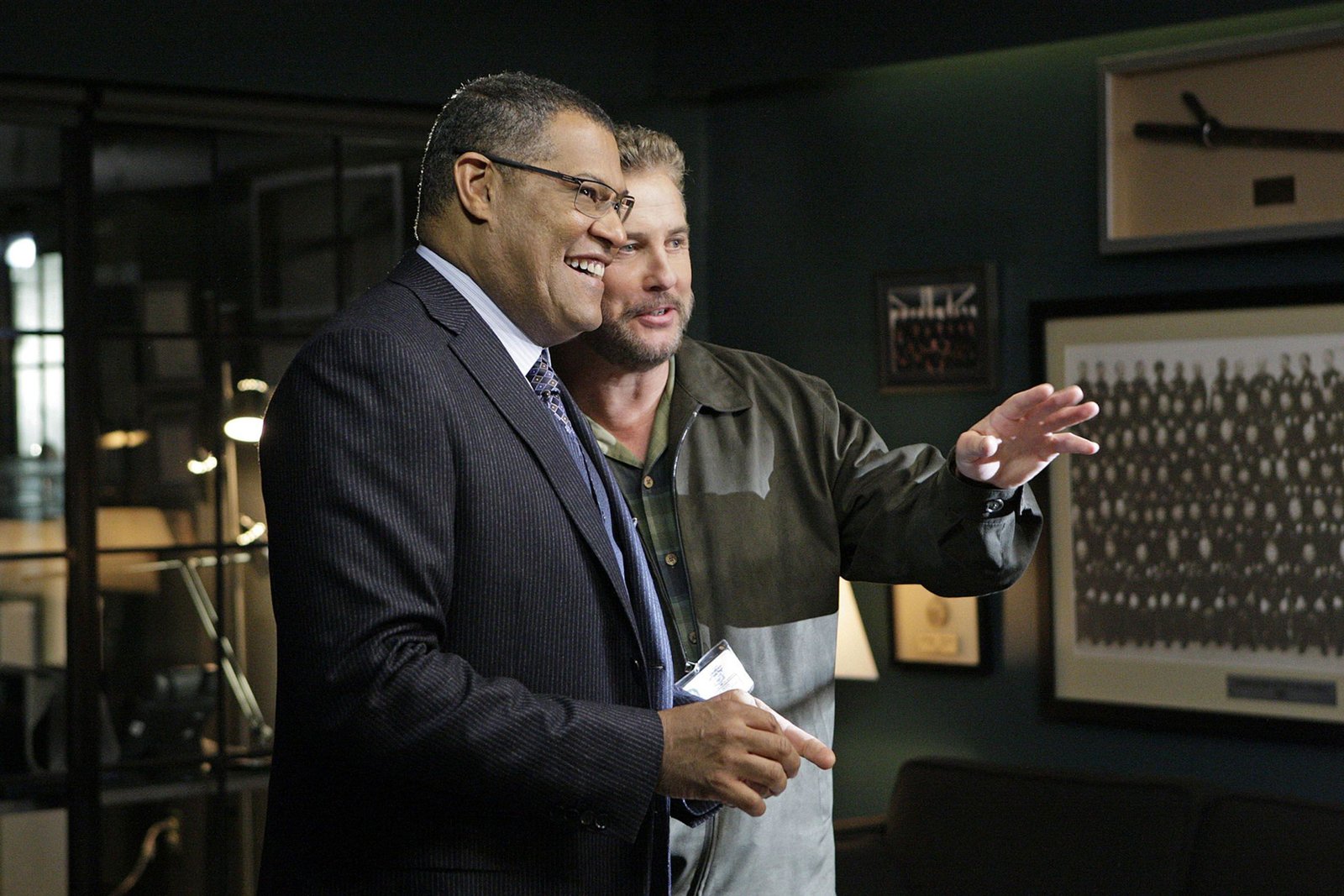 Abschied eines ErmittlersLaurence Fishburne (li.) in der Rolle des Pathologen Dr. Raymond Langston mit William Petersen als CSI-Ermittler Gil Grissom am Set von 'CSI - Den Tätern auf der Spur'.Bild: © RTL