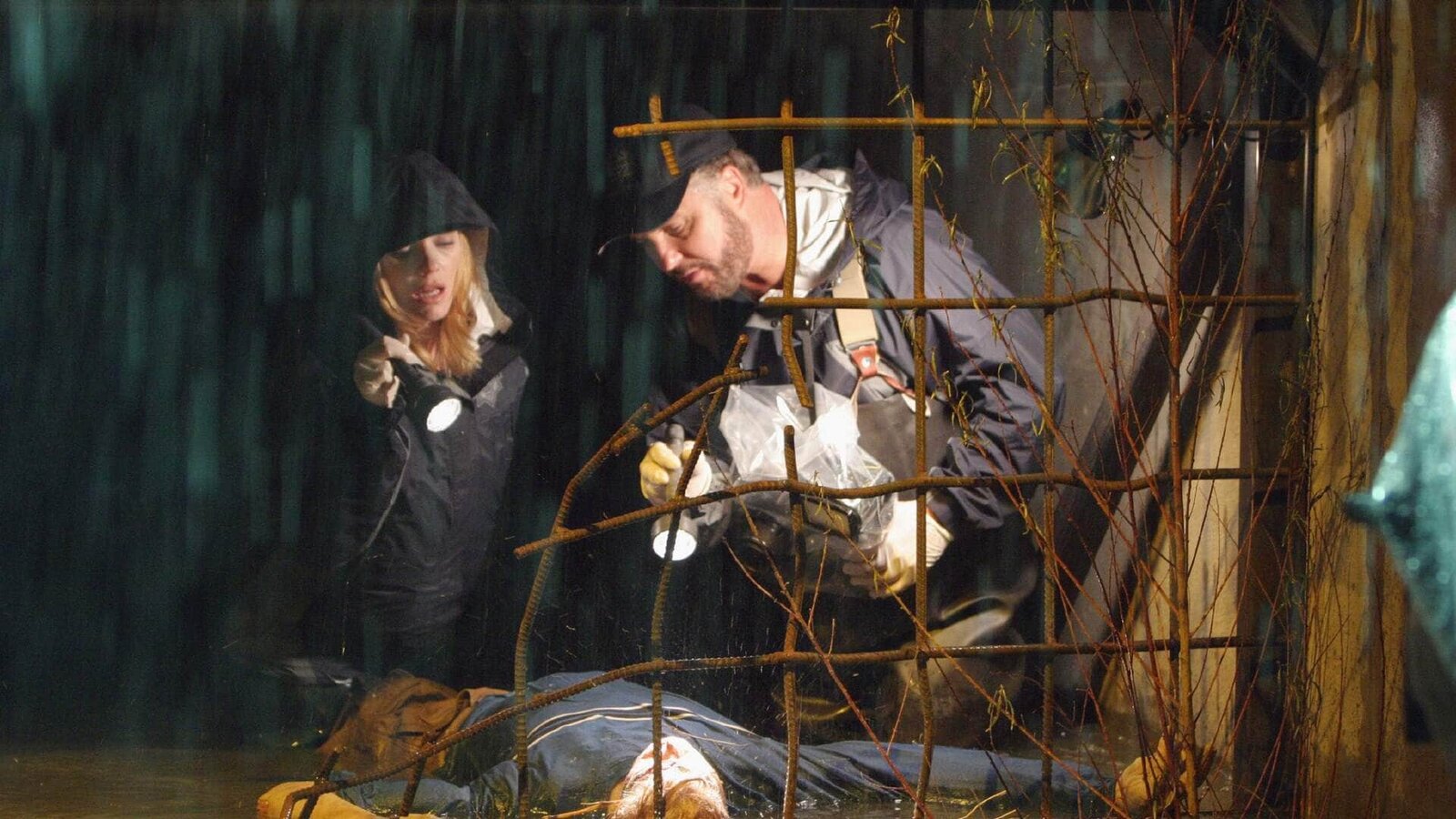 AbgründeCatherine (Marg Helgenberger) und Grissom (William Petersen) untersuchen eine Leiche, die in einem Abwasserkanal gefunden wurde.Bild: © TVNOW / CBS