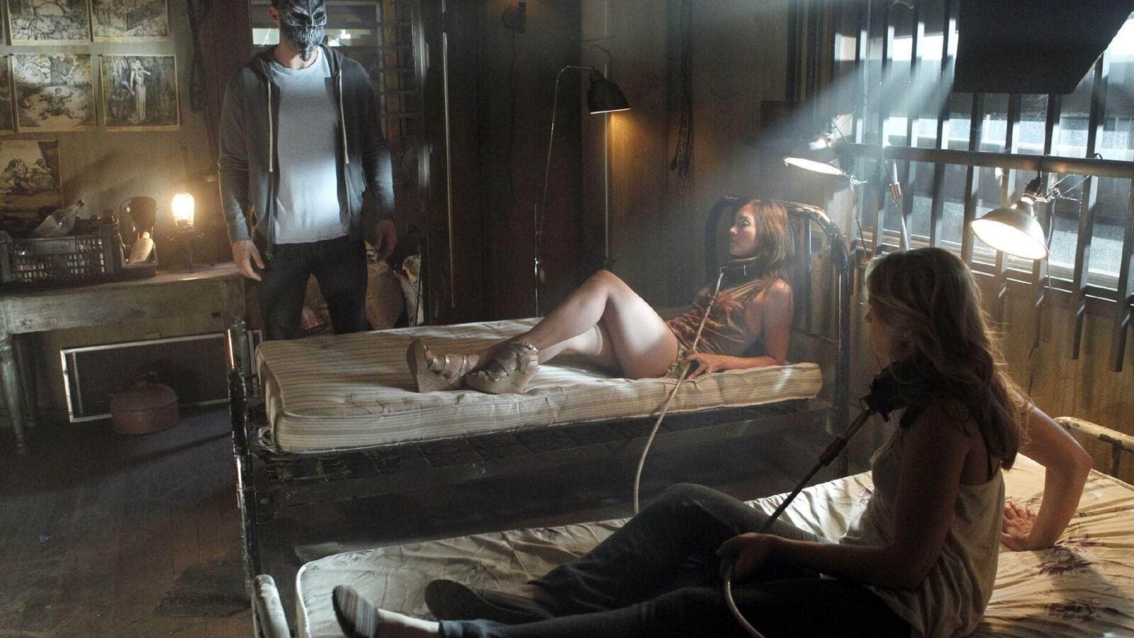 Stadt der SchmerzenEllie Brass (Teal Redmann, M.) und Morgan Brody (Elisabeth Hanois, r.) werden von ihrem Entführer (Lucas Kerr) gefangen gehalten...Bild: © MG RTL D