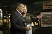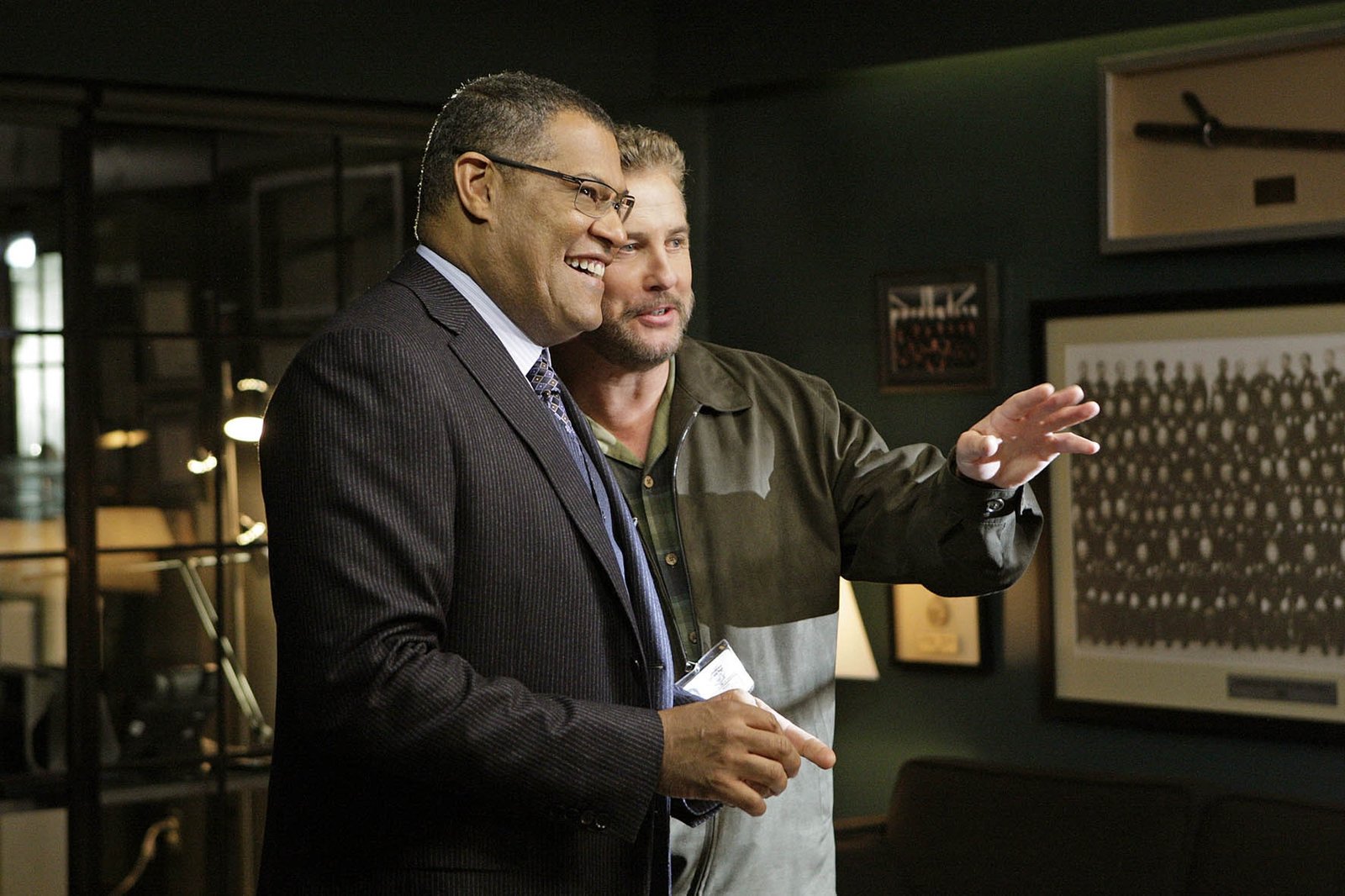 Laurence Fishburne (li.) in der Rolle des Pathologen Dr. Raymond Langston mit William Petersen als CSI-Ermittler Gil Grissom am Set von "CSI - Den Tätern auf der Spur".Bild: © CBS Broadcasting Inc.